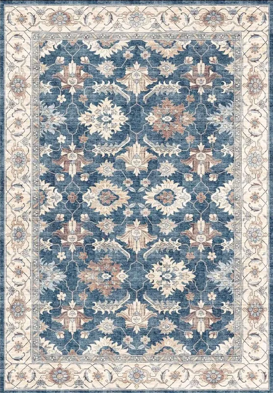 THE RUGS Perla Vintage Washable Rug - Ultra Soft Polyamide Non Slip Design in Blue Size: 120 cm x 160 cm Blue 120 cm x 160 cm