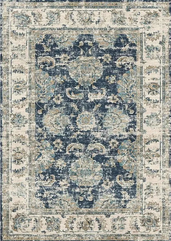 THE RUGS Jurdar Vintage Washable Rug - Ultra Soft Polyamide Non Slip Design in Blue Size: 120cm x 160cm - Blue - Size: 120cm x 160cm