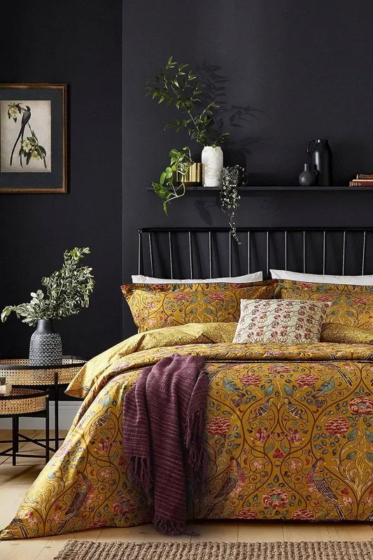 Morris & Co Unisex 'Seasons By May' Cotton Percale Duvet Cover Set in Mustard Size: Super King Mustard Super King female