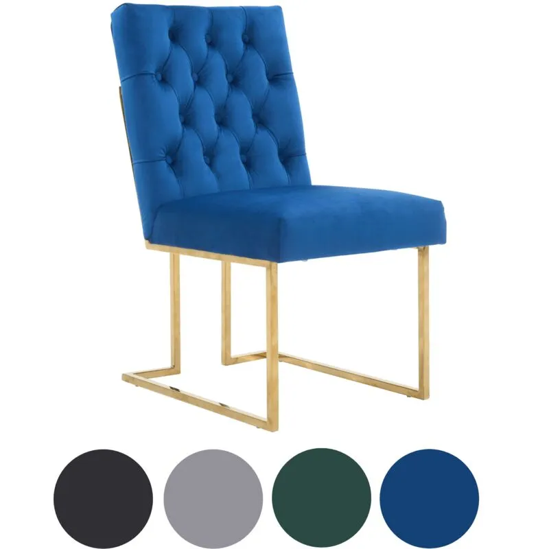 LIFE INTERIORS Single Blue Siena Luxury Tufted Velvet Dining Chair with Gold Frame & Legs - Modern Upholstered Accent Chair