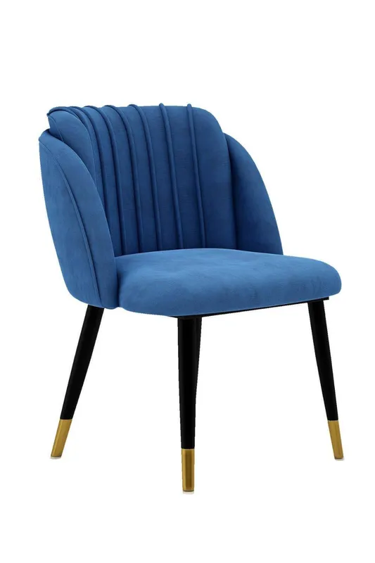 Life Interiors Unisex Single Milano Velvet Dining Chair w/ Stylish Ribbed Back Design, Black Metal Legs w/ Gold Tips in Blue Blue One Size female