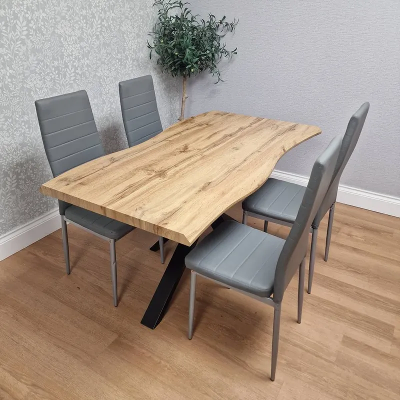 KOSY KOALA Wooden Brown Dining Table with 4 Grey Velvet Chairs, Stylish Dining Room Furniture