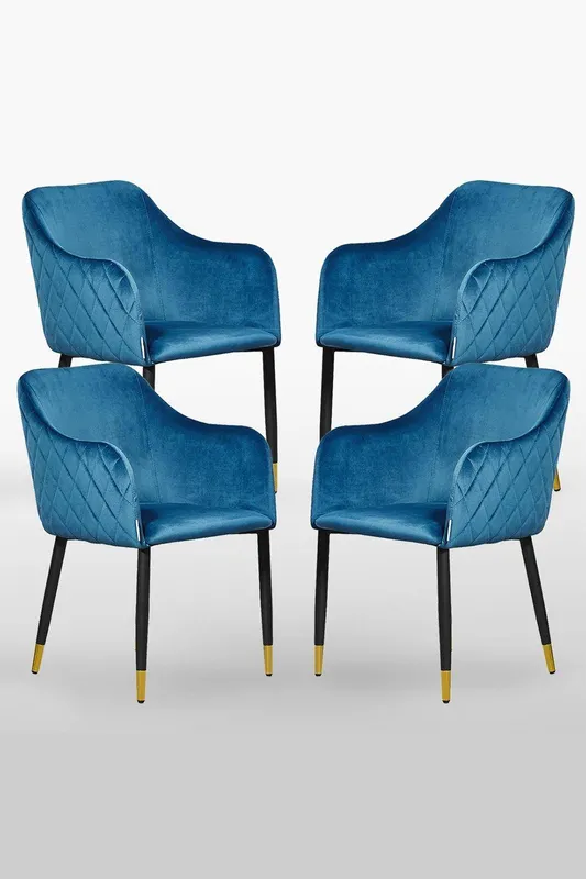 Life Interiors Unisex Set of 4 Verona Velvet Dining Chairs w/ Quilted Back & Black Legs - Modern Accent Chair w/ Gold Foot Caps in Blue Blue One Size female