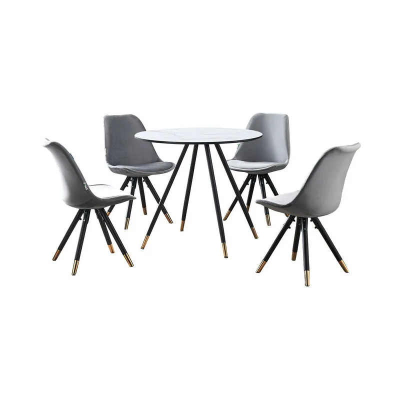 KOSY KOALA Unisex Dining Table Set w/ 4 Grey Velvet Chairs Modern Kitchen Dining Room Furniture in Brown Brown One Size female