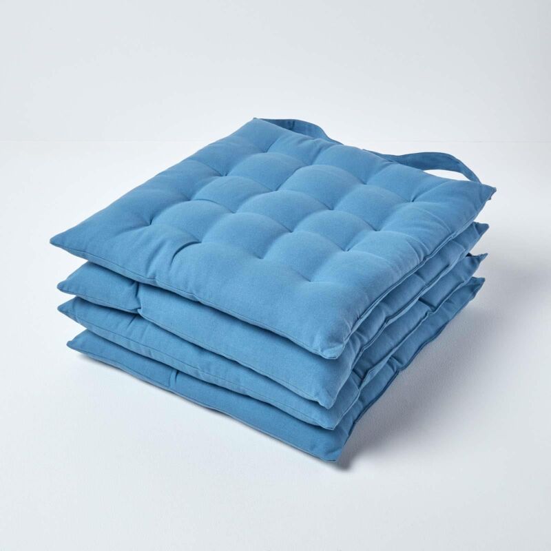 Airforce Blue Plain Seat Pad with Button Straps, 40 x 40cm, Set of 4 - Homescapes