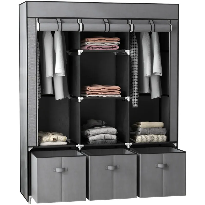 Portable Fabric Wardrobe with 5 Shelves and 3 Fabric Drawers, Grey - Homcom