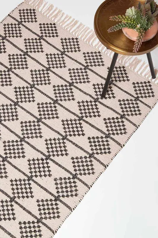 Homescapes Adana Handwoven Cotton Textured Rug in Black Size: 90 cm x 150 cm Black 90 cm x 150 cm
