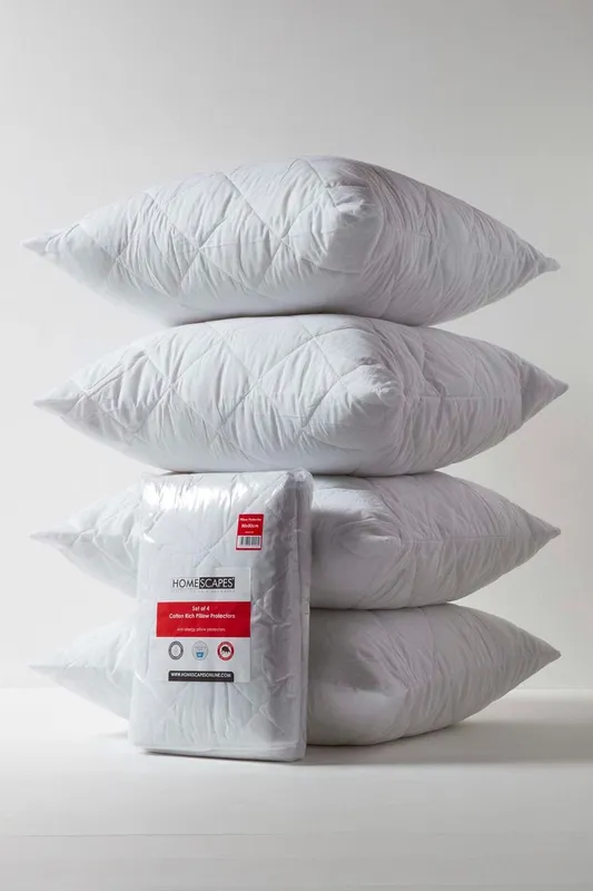 Homescapes Cotton Rich Quilted Pillow Protectors 80 x 80 cm, Pack of 4 in White Size: 80 x 80 cm White 80 x 80 cm