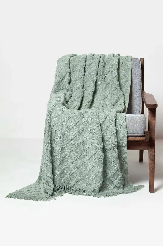Homescapes Diamond Cotton Tufted Throw in Green Size: 125cm x 150cm - Green - Size: 125cm x 150cm