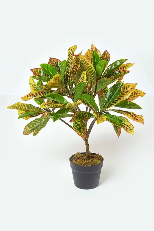 Homescapes Rushfoil' Artificial Croton Plant with Pot, 65 cm in Green - Green - Size: One Size