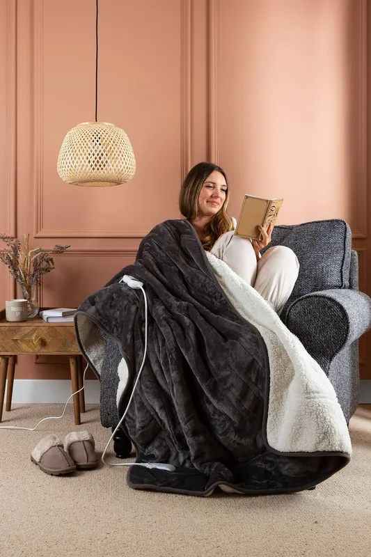 Slumberdown Unisex Cosy & Snug Sherpa Fleece Electric Blanket Heated Throw in Charcoal Charcoal One Size female