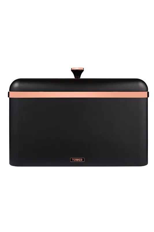 Tower Cavaletto Bread Bin, Airtight, Carbon Steel, Black & Rose Gold Black