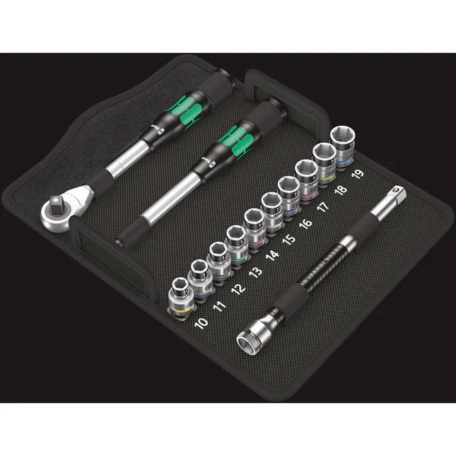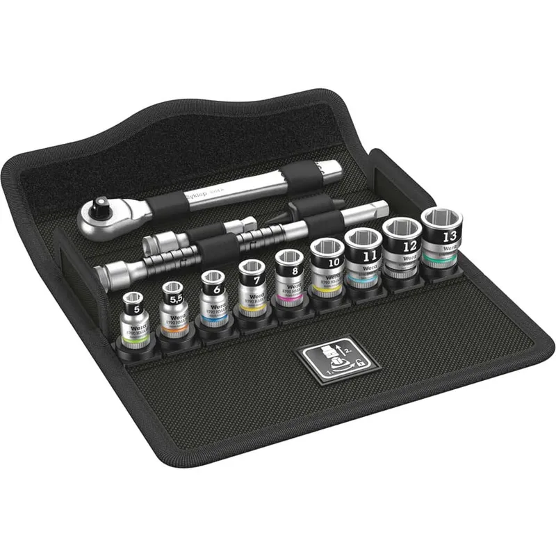 Wera 8006 SC 1 Zyklop Hybrid 13 Piece 1/2" Drive Socket Set with Ratchet Extension in Socket Twist/Lock Pouch