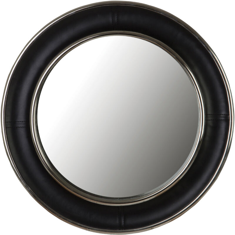 Premier Housewares - Churchill Black Genuine Leather Wide RimWall Mirror