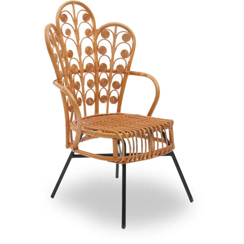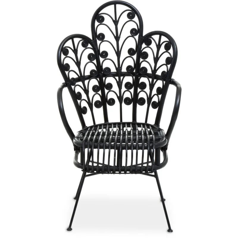 Premier Housewares - Interiors by Premier Black Natural Rattan Scalloped Back Chair, High Back Rattan Lounge Chair, Outdoor Rattan Chair for Garden