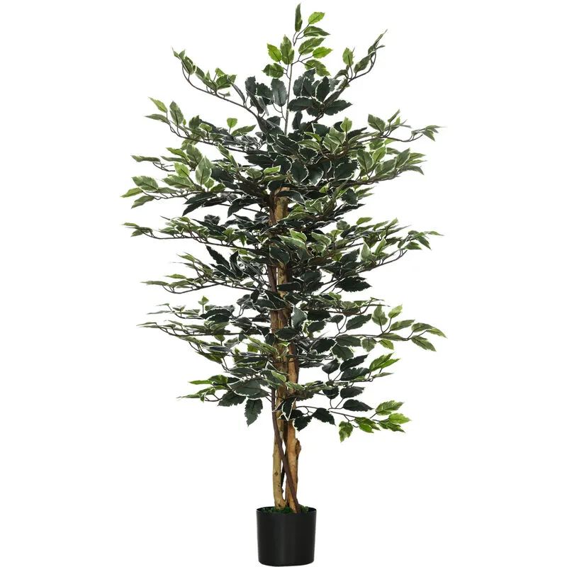 HOMCOM Artificial Ficus Tree with Lifelike Leaves and Natural Trunks Green
