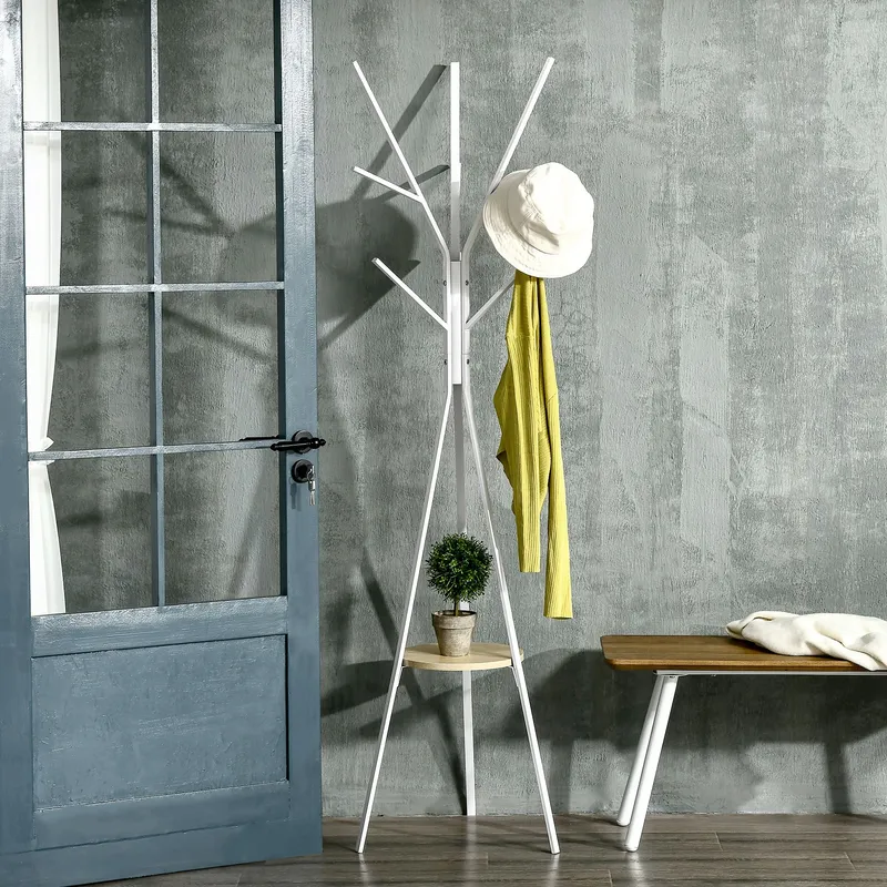 HOMCOM Free Standing Coat Rack Metal Shelf Holder Stand Display Clothes Hat in White White