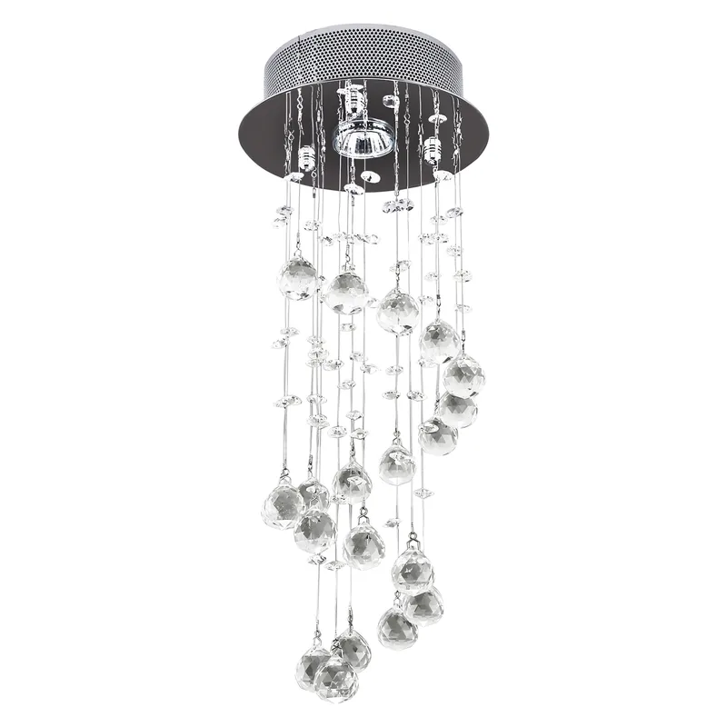 HOMCOM Metal Crystal Ceiling Light Chandelier Elegant Pendant Lamp Living Room Stairway Stairway Spiral Rain Drop Pendant Lamp Silver Aosom UK