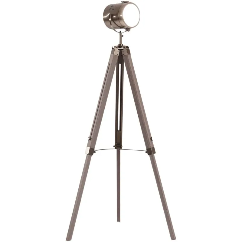 Industrial Tripod Floor Lamp Wood Height Adjustable Spotlight Bronze Tone - Homcom