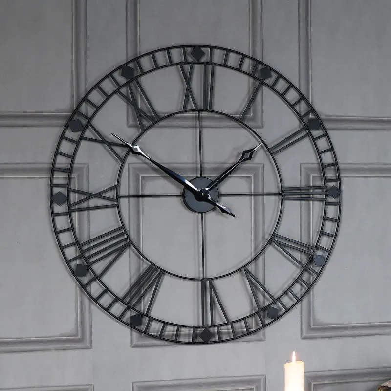 Large Black Iron Skeleton Wall Clock 88cm x 88cm Material: Home Decor & Accessories/Clocks