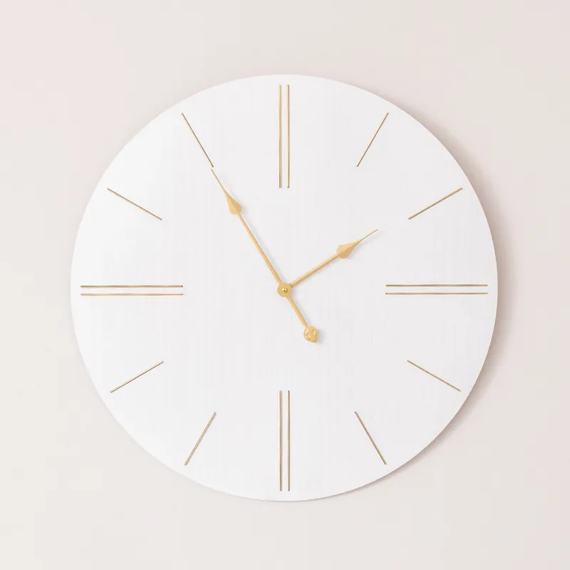 Large White Wooden Grain & Gold Detailed Wall Clock - 70cm x 70cm Material: New Products