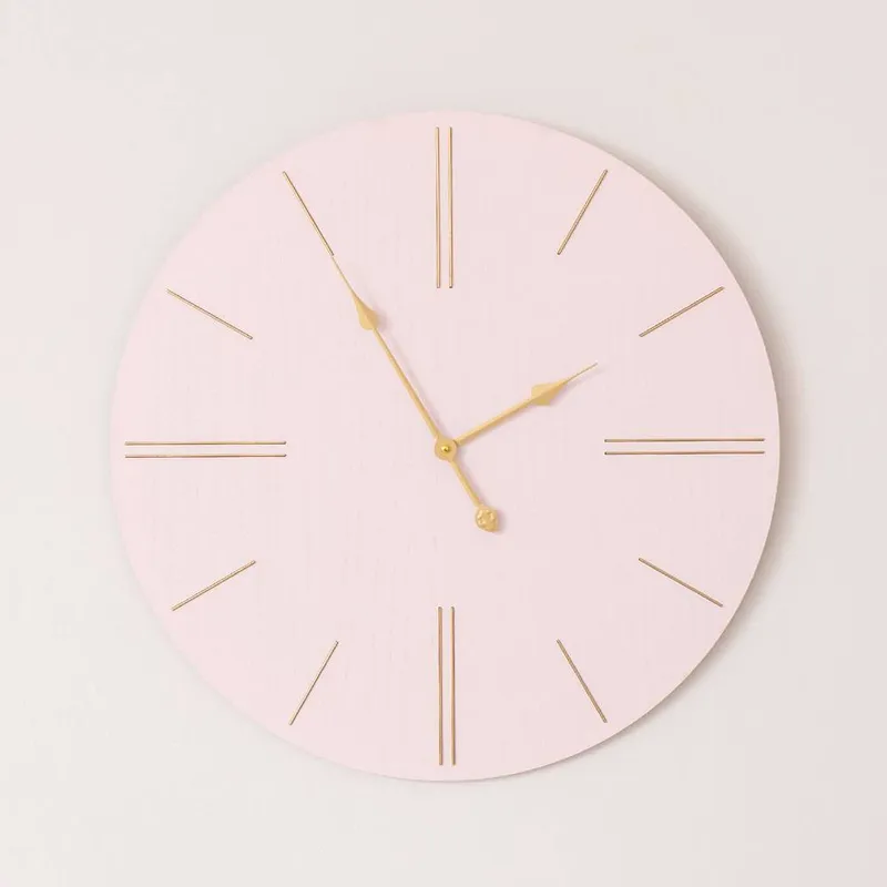 Melody Maison Large Pink Wooden Grain & Gold Detailed Wall Clock - 70cm X 70cm Size: 70 cm X 70 cm Pink 70 cm X 70 cm