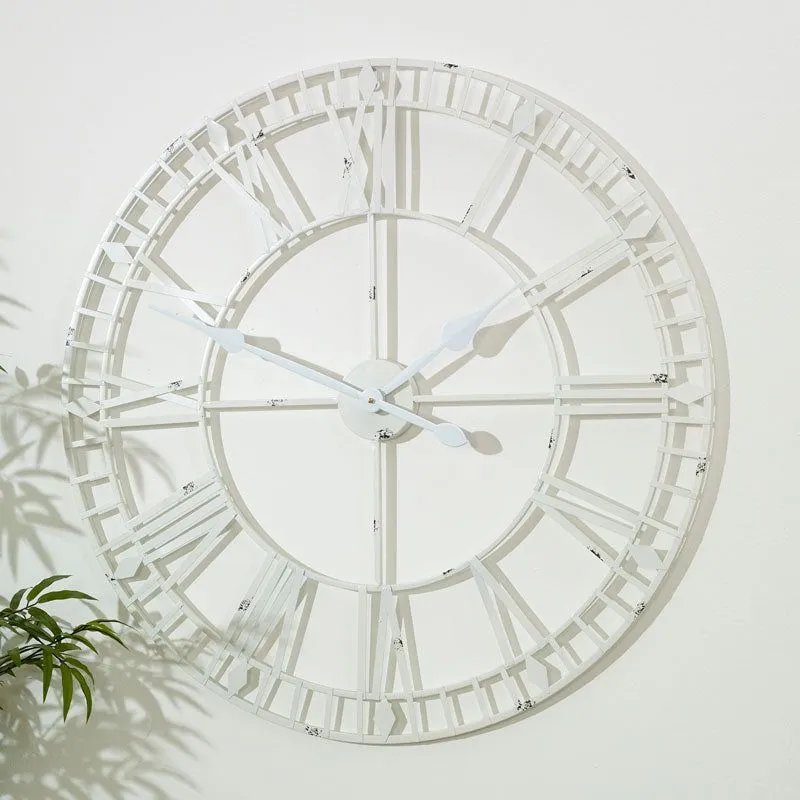 Melody Maison Large White Skeleton Wall Clock 80cm X 80cm Size: 80 cm X 80 cm White 80 cm X 80 cm