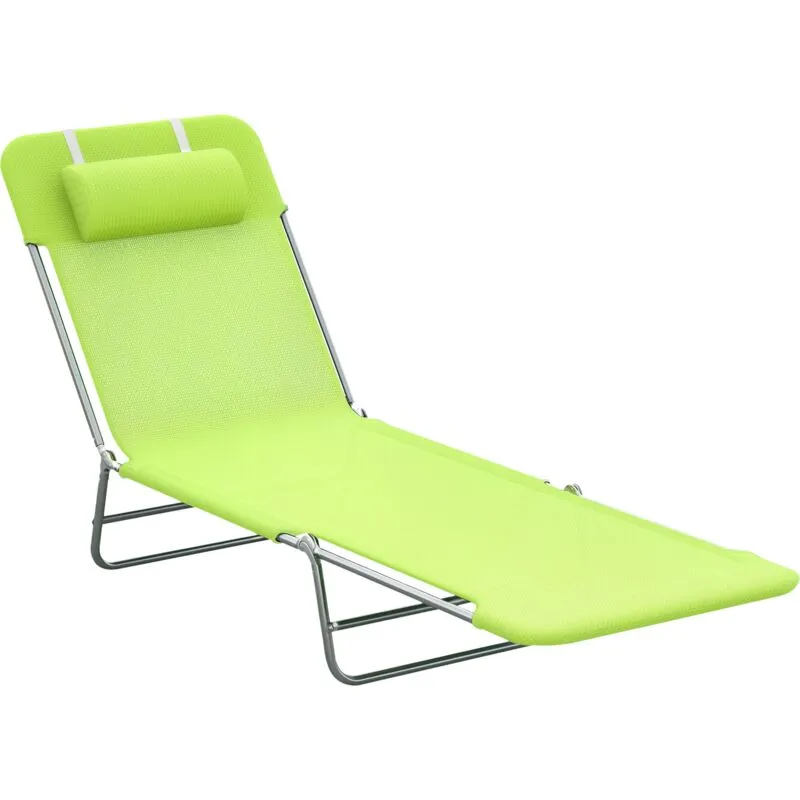 Outsunny Adjustable Sun Bed Garden Lounger Recliner Relaxing Camping Green