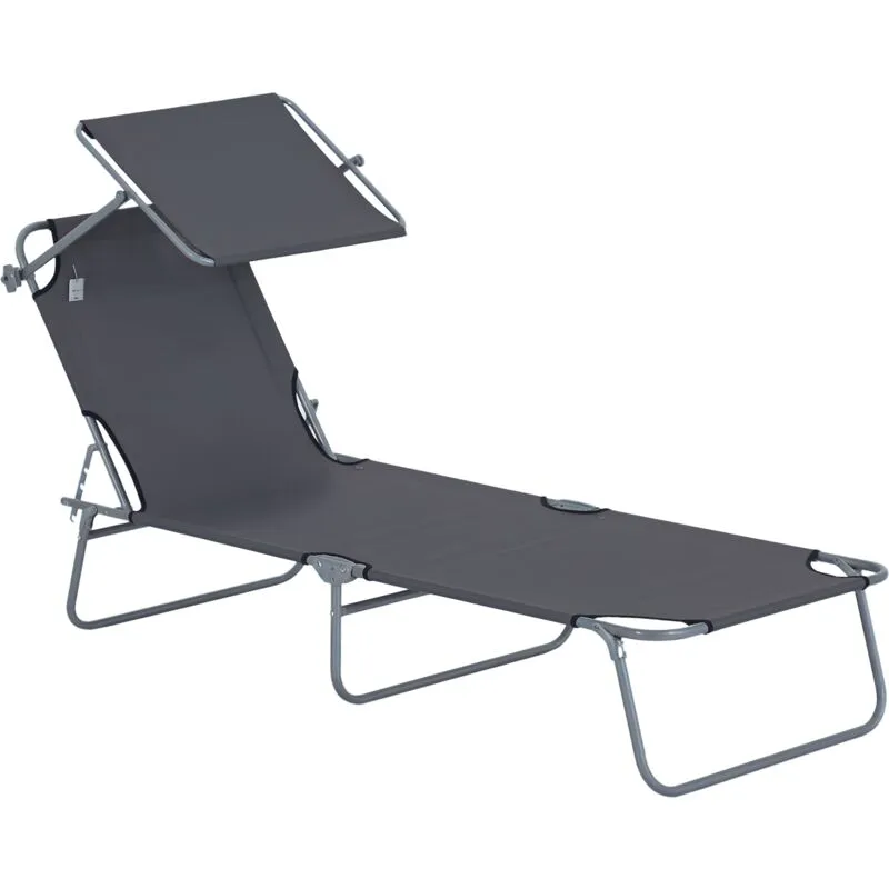 Outsunny Folding Chair Sun Lounger w/ Sunshade Garden Recliner Hammock Grey