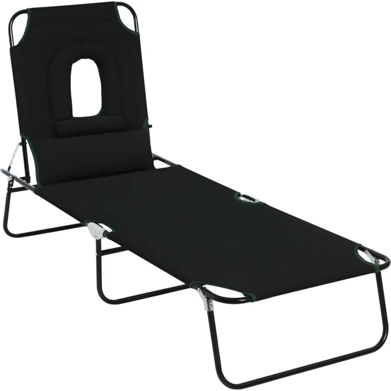 Outsunny Folding Sun Lounger Reclining Chair w/ Pillow Reading Hole Black