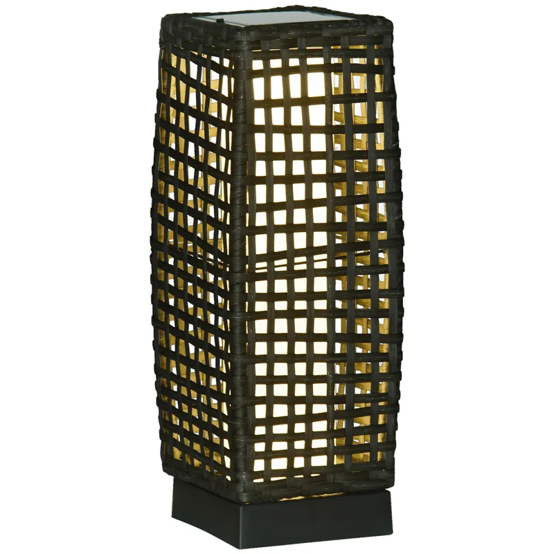 Outsunny Waterproof Outdoor Rattan Solar Lantern, Brushed PE Wicker Patio Garden Lantern w/ Auto On/Off Solar Powered LED Lights Aosom UK