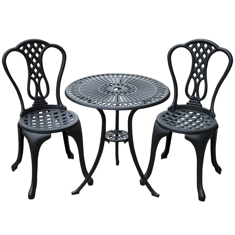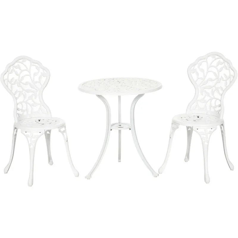 Outsunny HOMCOM 3 Piece Patio Cast Aluminium Bistro Set Garden Outdoor Furniture Table and Chairs Shabby Chic Style Aosom UK