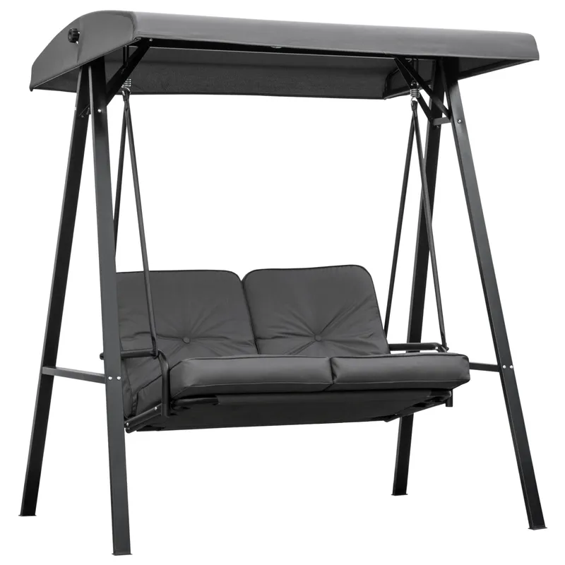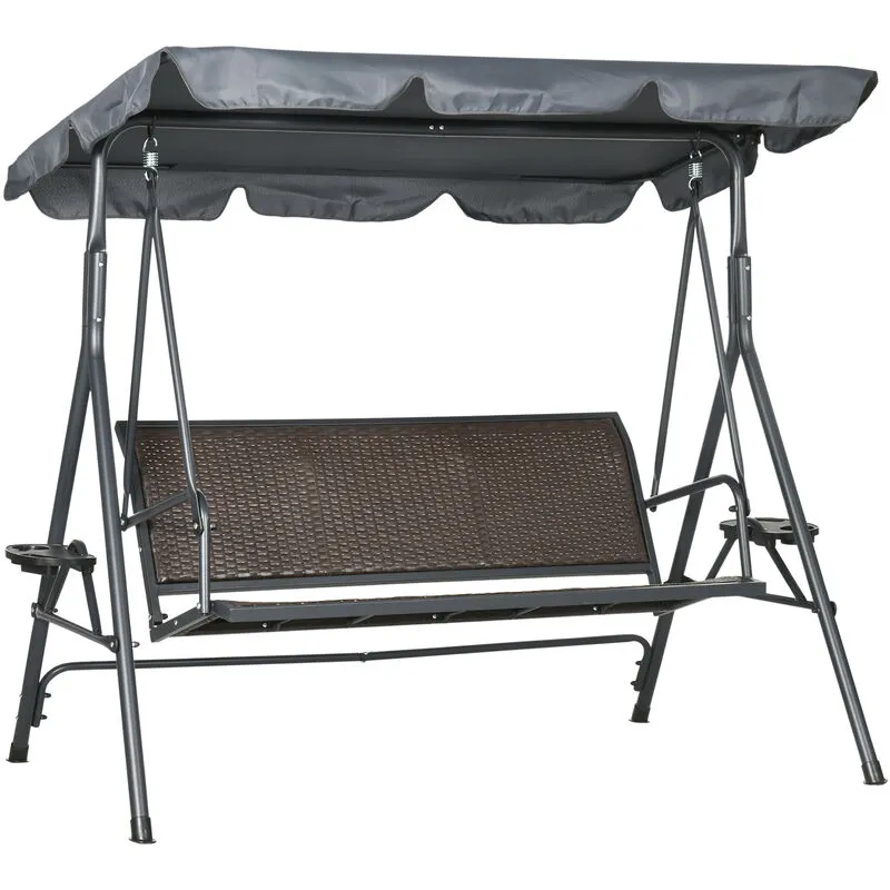 Outsunny 3 Seater Garden Swing Seat Bench w/ Adjustable Canopy, Dark Grey