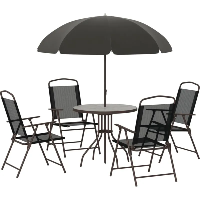 Outsunny - 6 Piece Patio Dining Set with Garden Umbrella 4 Folding Chairs Black