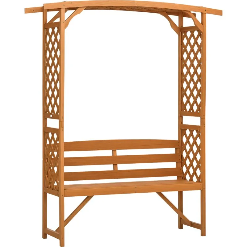 Outsunny Arch Pergola Garden Bench, Wooden Garden Arbour with Seat, Brown