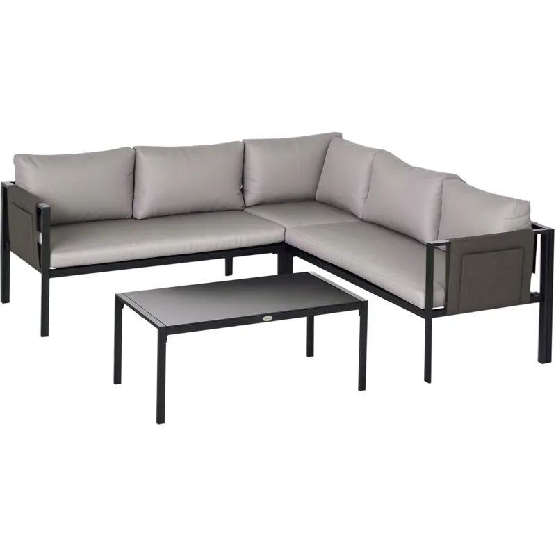 Outsunny 4 Pieces Garden Sectional Sofa Table Furniture Set Aluminium w/ Cushion