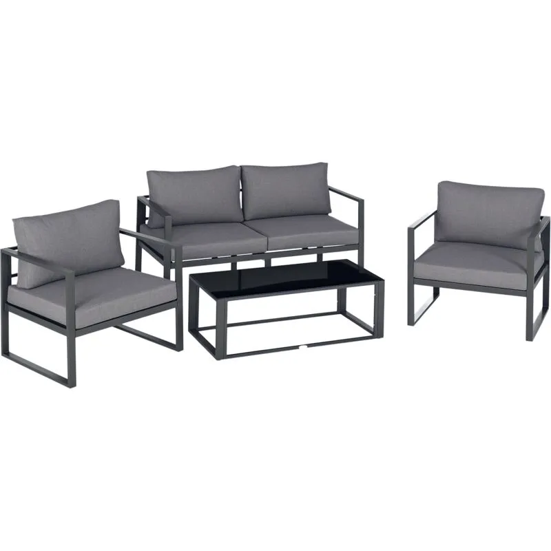 Outsunny - 4 Piece Garden Sofa Set w/ Tempered Glass Coffee Table Light Grey