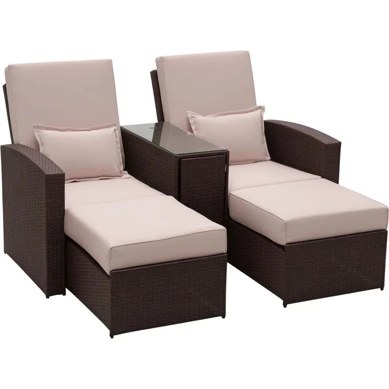 Outsunny Garden Double Rattan Sun Lounger Sofa Recliner Wicker Patio Brown
