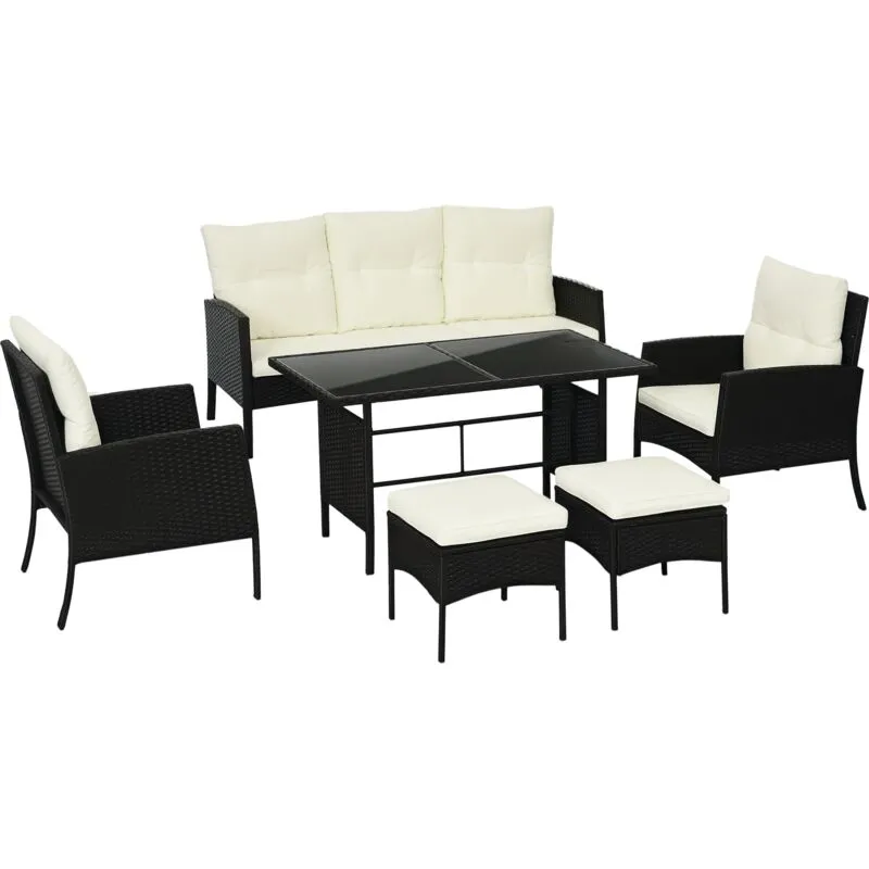 Outsunny - Rattan Garden Furniture Sofa Set, 2 Armchairs 2 Footstools Table White