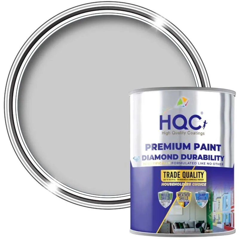 HQC Matt Emulsion Paint - Matt Finish for Interior Walls & Ceilings - Light Grey - 1L