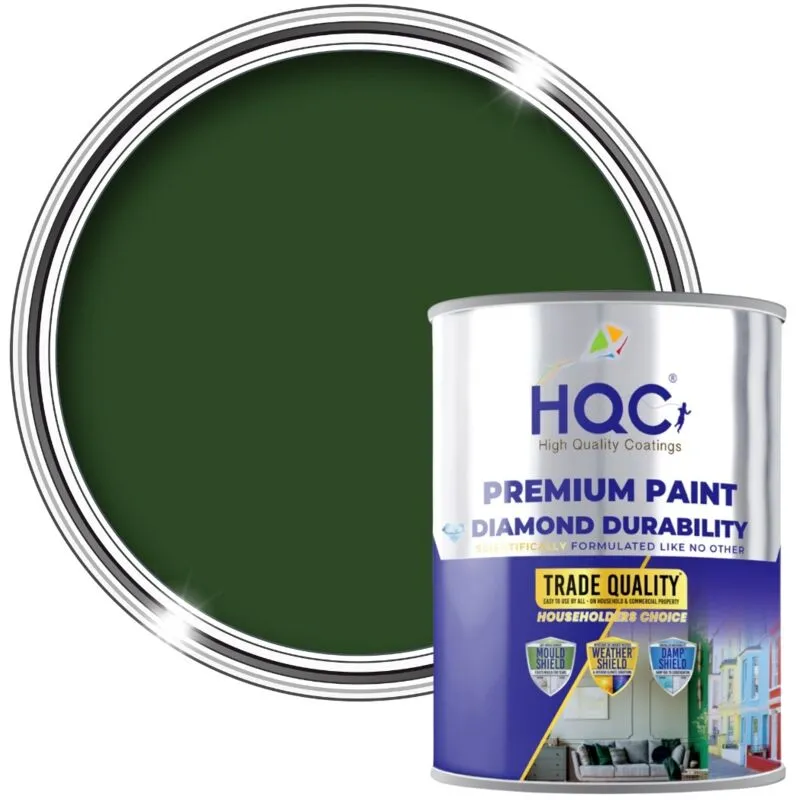HQC Smooth Masonry Paint - Weatherproof & Long-lasting Protection For All Exterior Walls - Racing Green - 1L