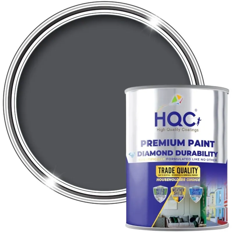 HQC Satin Paint - Smooth, Durable Satin Finish For Walls & Ceilings - Satin Classic Grey - 1L