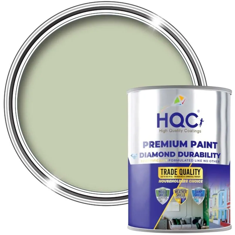 HQC Matt Emulsion Paint - Matt Finish for Interior Walls & Ceilings - Sage Green - 1L
