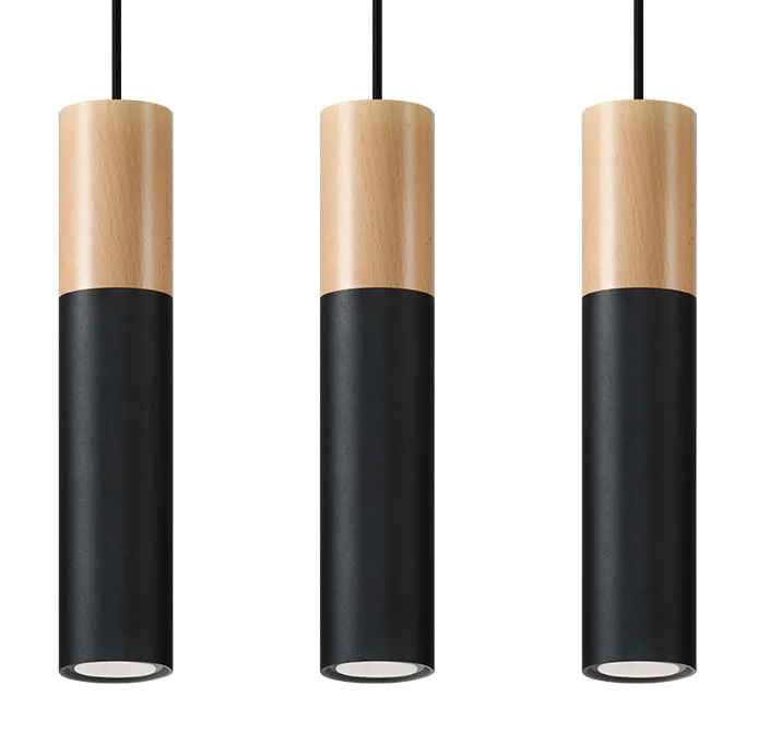 Sollux Lighting Pablo Triple Hanging Pendant Light Black, Natural Wood GU10