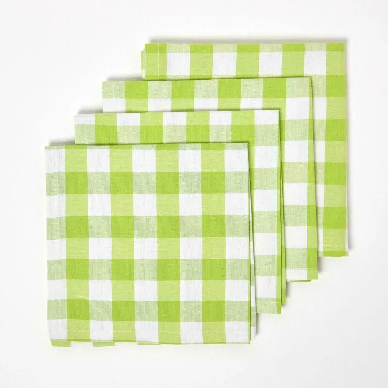 Homescapes - Green Block Check Cotton Gingham Napkins, Set of 4