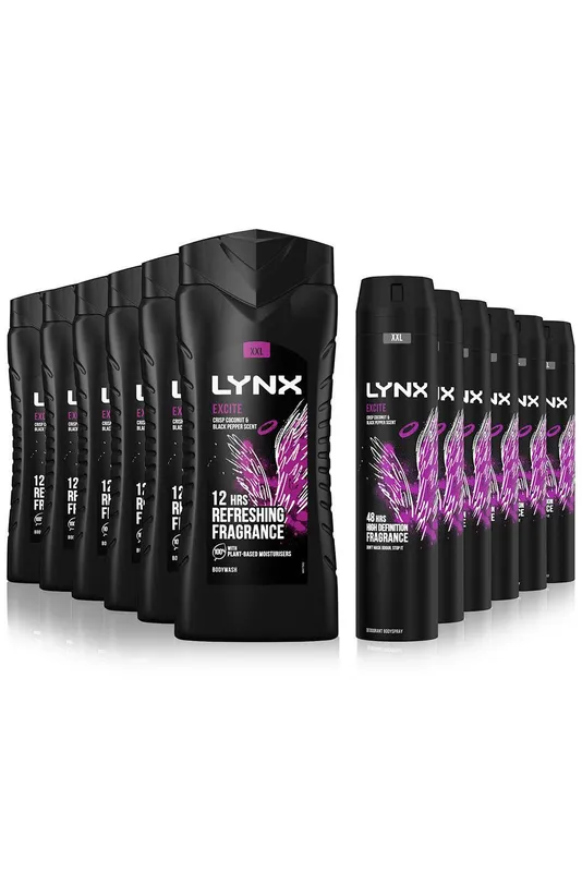 Lynx Excite Shower Gel 500ml, 6 Pack with Body Spray 250ml, 6 Pack in Black - Black - Size: One Size