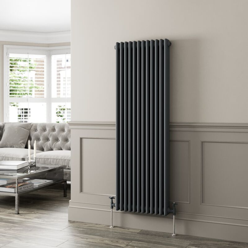 Bathroom Kingdom Coneva Anthracite Vertical Traditional Radiator 1800x370 in Grey Grey