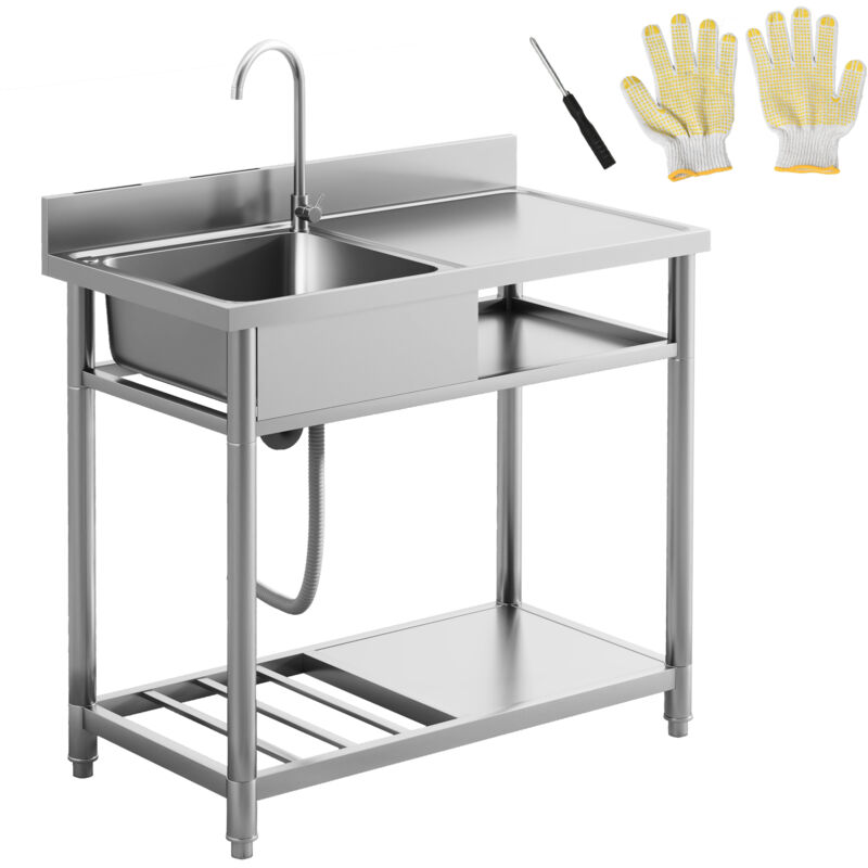 Homcom Stainless Steel Utility Sink with Cold & Hot Water Pipe Silver Tone Silver
