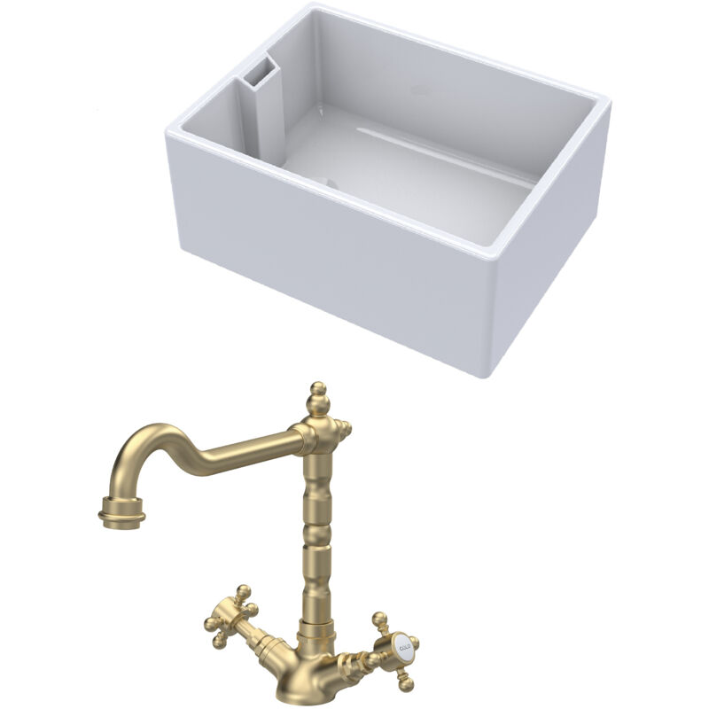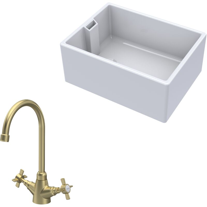 Balterley Fireclay Kitchen Bundle 1 Bowl Belfast Sink Brushed Brass 615mm in White White