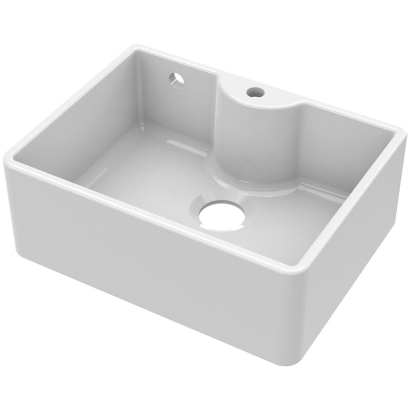 Balterley 595mm - 1 Bowl Fireclay Butler Kitchen Sink - Tap Ledge, Hole, Overflow & Waste